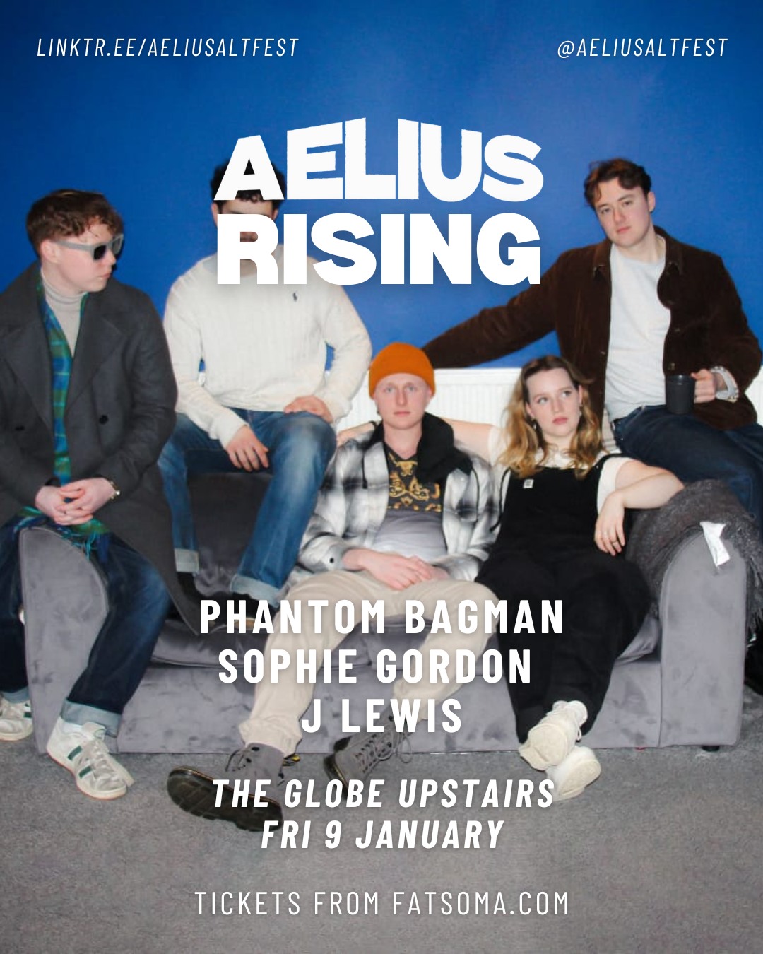Aelius Rising showcases a selection of artists both performing and not (yet) performing Aelius Alternative Festival 2026. Aelius Rising is a series of three live events taking place at The Globe Upstairs on Friday the 9th of January, Friday the 13th of February, and Friday the 13th of March.