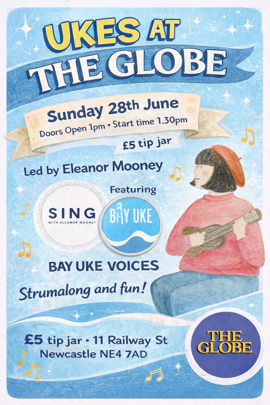 The wonderful Eleanor Mooney will also be on hand to facilitate a small workshop and strumalong.