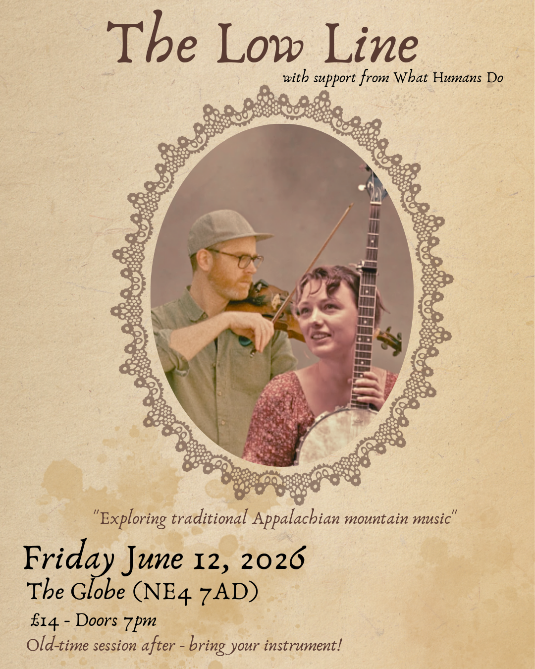 “The Low Line is a new band featuring experienced performers Afra Jurkiewicz and Joe Mansfield. Afra, a multi-instrumentalist and vocalist based in the Welsh borders came to the banjo, after performing on piano and accordion in Poland. Joe, a Bristol based strings player and singer, is best known for fronting Joe & the Temperance Two on fiddle.